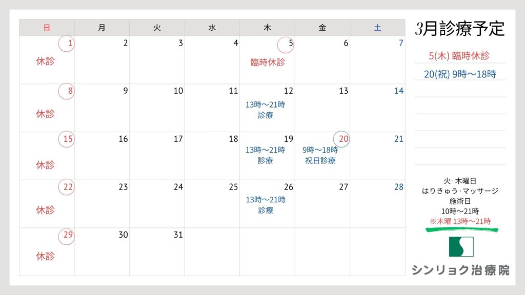 いつもシンリョク治療院にご来院いただき、ありがとうございます。