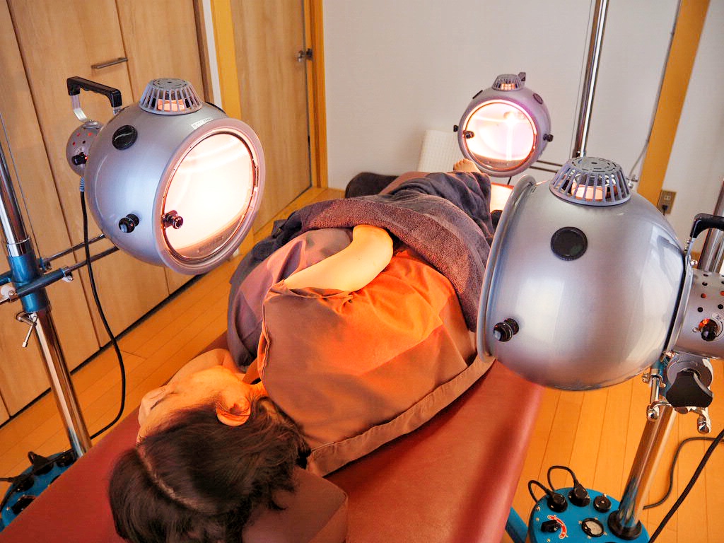 以上が施術の一連の流れとなります。可視総合光線療法は症状に合わせ照射部位を選択し、施術中の体位変換はほとんど無く、受けることが可能です。また、温熱効果もあることから、これからの季節に適した施術でもあります。はりきゅうやマッサージなど触れられることが苦手な方にも適した治療になると思います。