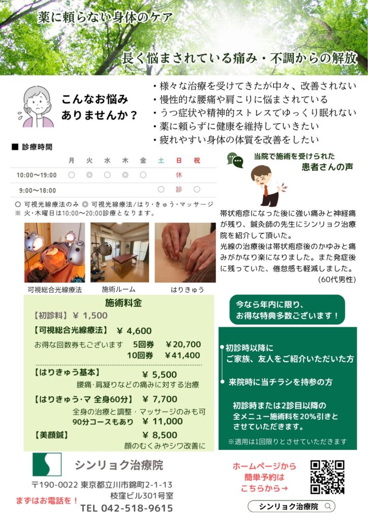 現在、シンリョク治療院ではご来院の患者様に対し、お得な特典をご用意しております。
